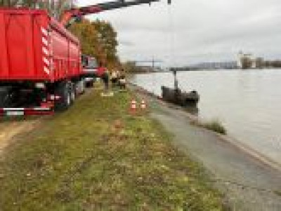 - Nach der Bergung des Fahrzeuges konnten Erhebungen unter Wasser bestätigt werden. Im Fahrzeug befindet sich keine Person.